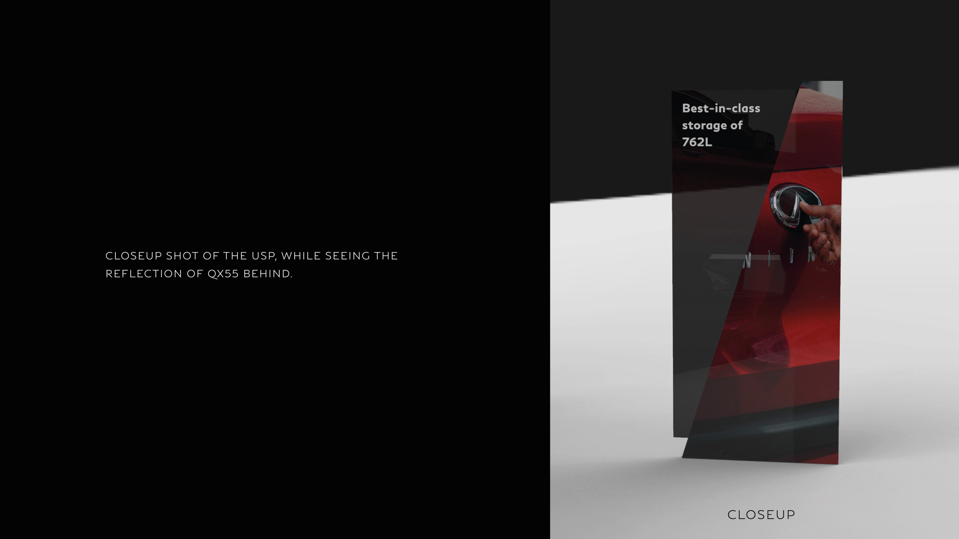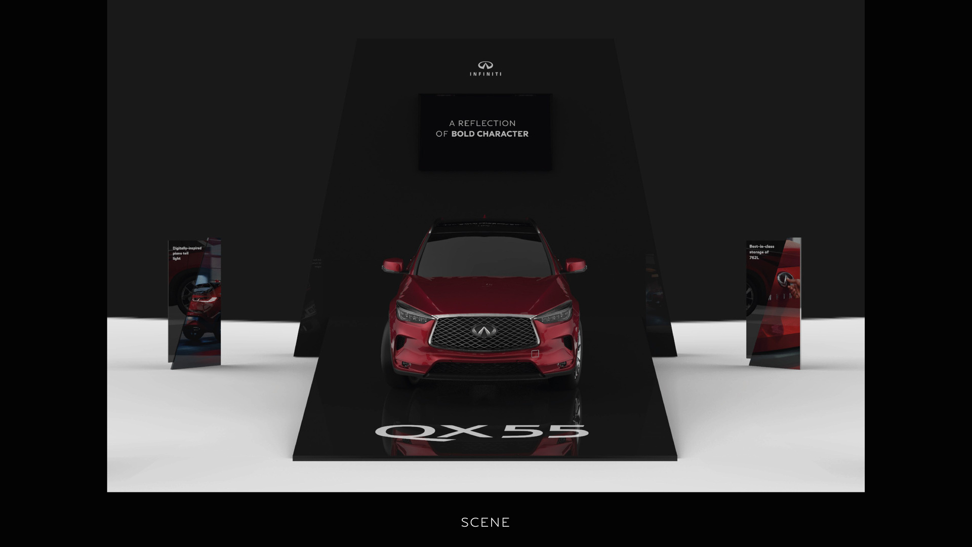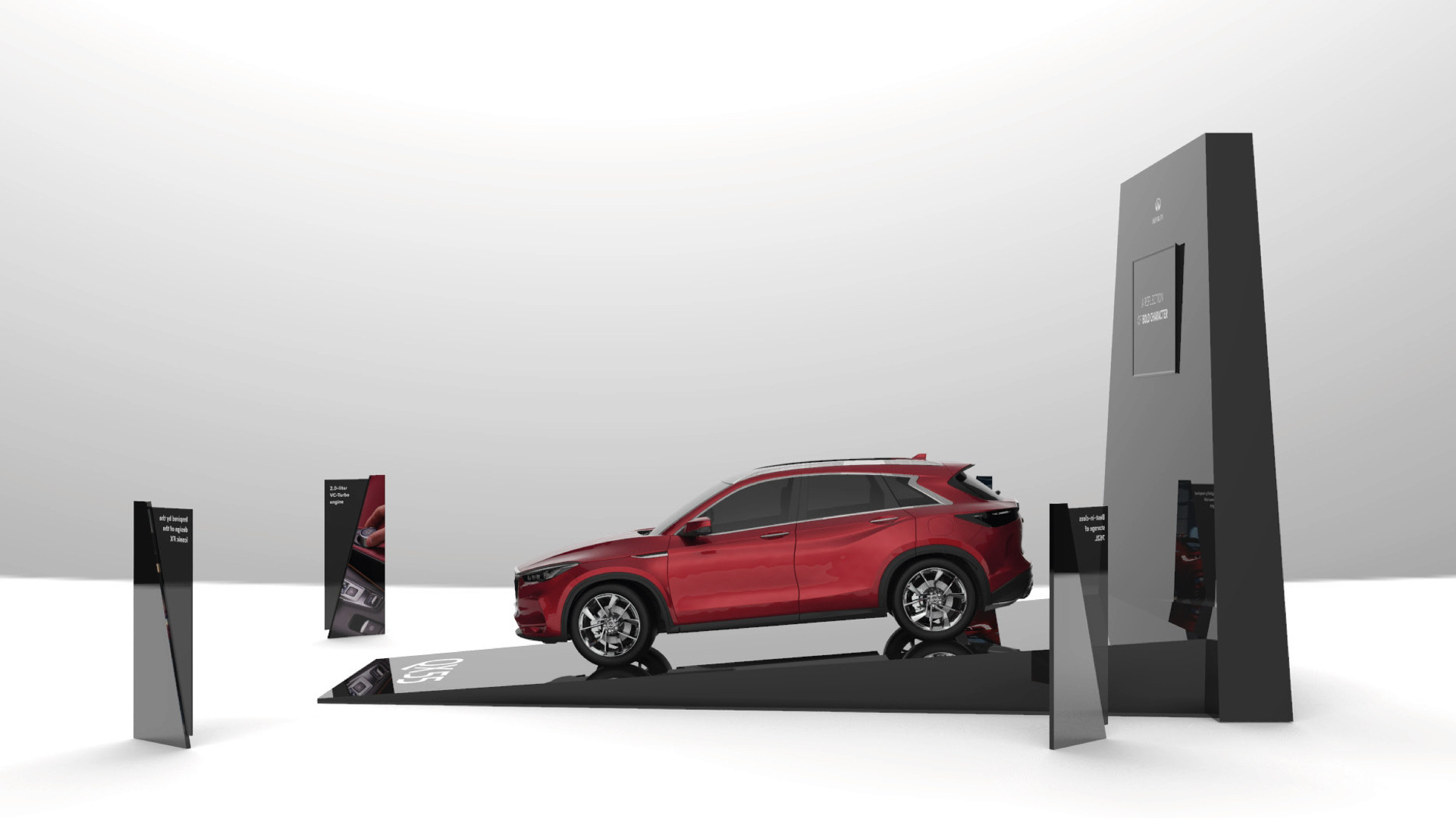 A pop-up showroom design for Infiniti, implemented in Dubai Mall, centred on the theme “A Reflection of Bold Character.” The project bridged the gap between digital campaign assets and physical retail engagement.